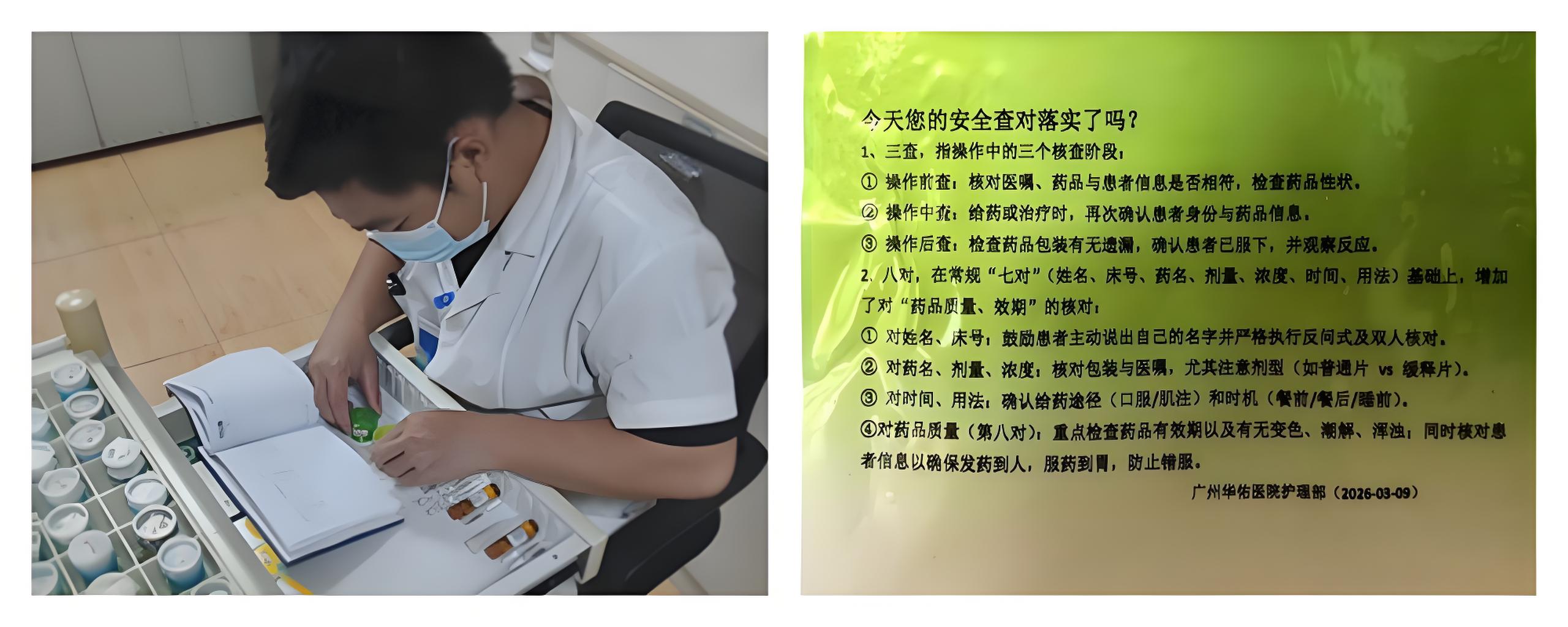 在用药安全管理上,严格落实“三查八对”制度,通过日常工作提醒与专项检查,督促护理人员规范执行操作前、中、后查对流程,仔细核对药品质量、效期与患者信息,确保发药到人、服药到胃,从细节处防范用药差错,守护患者健康。